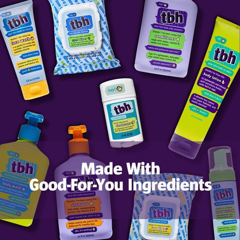- From the makers of Fairy Tales Hair Care. The #1 brand of salon quality hair care for kids since 1999. TBH Kids personal care products consist of natural kids deodorant, Gentle & Spot Face Wash, Body Wash & Lotion, Shampoo and Conditioner to help control oily hair, plus Gentle & Spot Cleansing Wipes. TBH Kids personal care products - teaching kids and tweens that good habits start early
