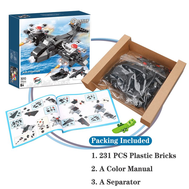 - 【Great Gift Choice】The 231 pieces creator 3 in 1 army building toys packaged with an exquisite box makes a great holiday or birthday gift for boys and girls aged 6 and up, and for military fans. This fighter jet plane building sets is compatible with other brands bricks.