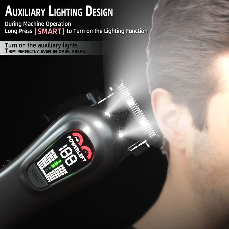 - 【Auxiliary Lighting】 The TCMKY hair clipper is equipped with a suitable lighting option, which is located at the head of the hair clipper. Push the power switch upward to start the hair clipper, and then press and hold the 【SMART]】button for 3 seconds to turn on the lighting function. When traveling, you can efficiently trim even without lighting.