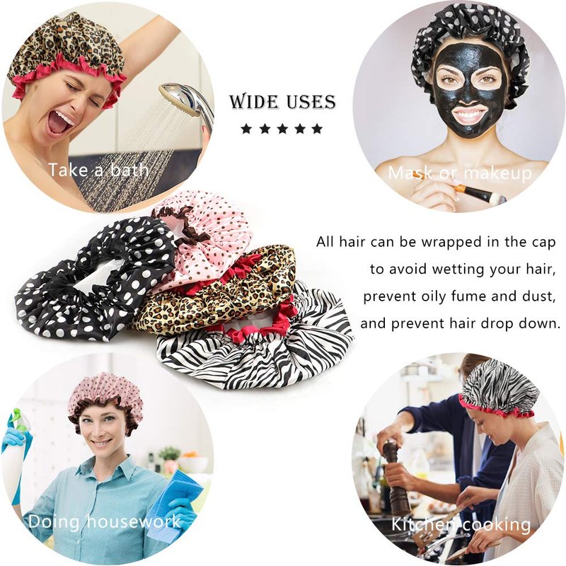 - FOUR PATTERN - Each order contains 4 different distinct styles to match your personality. These shower caps are both fashionable and lovely,giving you more choices to match with your pajamas.
