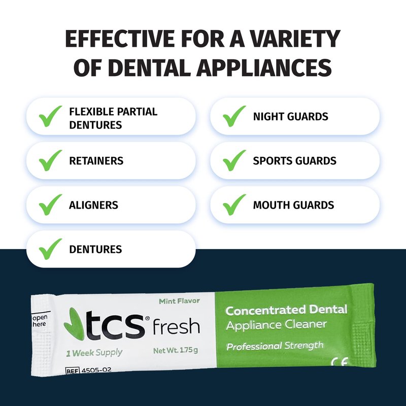 TCS Fresh Dental Appliance Cleaner - 24 Count - Professional Strength Concentrated Cleaner for Flexible Partials - Retainer Cleaner, Denture Cleaner, and Dental Night Guard Cleaner