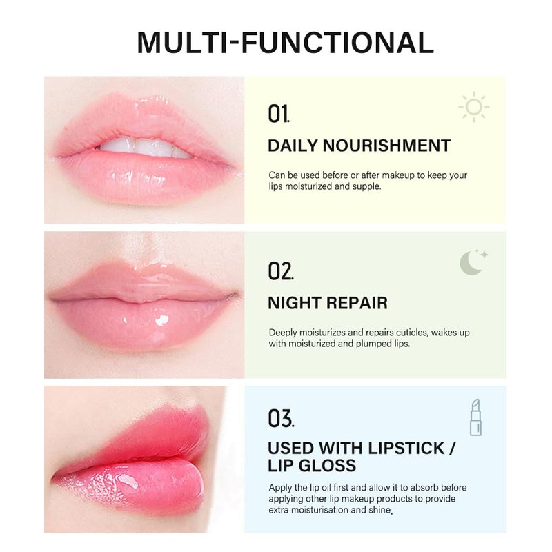 - 💋【Lip Glow Oil】- A luxurious, silky-smooth lip oil that offers instant moisturization and softening effects, leaving lips hydrated and supple. This oil-based formula also provides a natural tint of color, delivering a glass-like finish without the stickiness. Comes in a compact 3.7ml (0.12 fl oz.) bottle for convenient portability.
