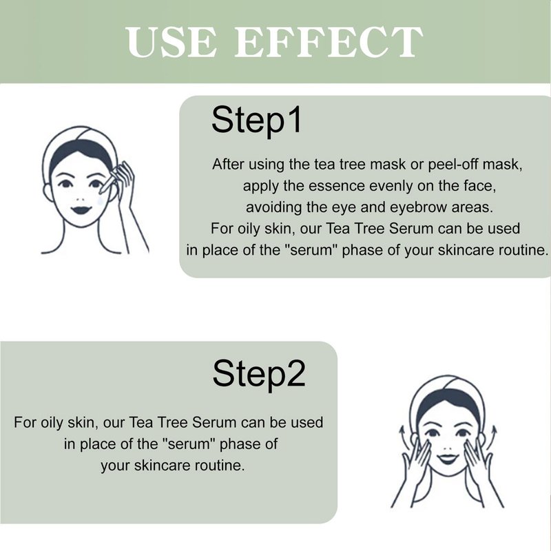 Features: Tea tree facial moisturizer non-greasy formula delivers deep hydration to your skin and restores its natural water balance. Tea Tree Serum for Face deeply hydrates for smooth, glowing skin for radiant, youthful skin. The serum is made of a variety of plant extracts and can be quickly absorbed by the skin without a greasy feeling. Specifications: ●NET WT:30ml ●Shelf life: 3 year Usage: 1.Directions: Shake before use.After cleansing skin in the day and night, Use on clean, dry skin. Apply 3-5 drops to face, neck, and decollete. PACKAGE CONTENT: 1* Tea Tree Serum