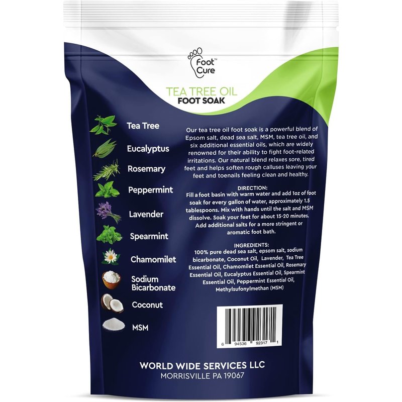 - 100% NATURAL FORMULA MADE IN USA: When it comes to our Foot Cure Lavender Oil Foot Soak, we make a point of using nothing but the finest natural and organic ingredients: Epsom salts, Pure Dead Sea salts, lavender oil, eucalyptus, peppermint, cajuput, camphor, rosemary, lavender, and other essential oils. Their powerful combined action of this toenail repair solution is the only weapon you will need for healthy feet.