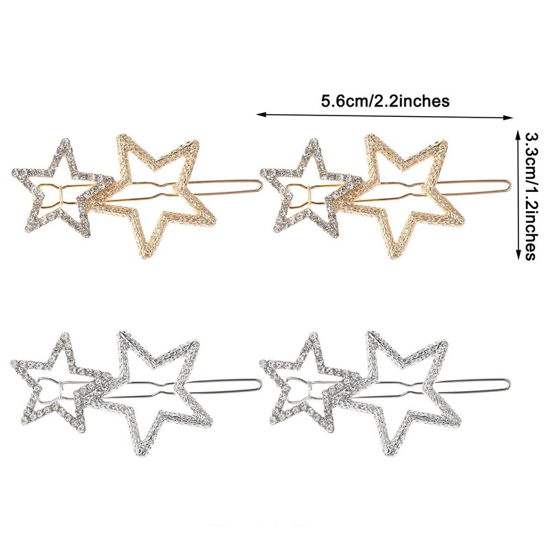 - Package Contents: You will receive 2 gold hollow star hair clips and 2 silver rhinestone star hair clips, a total of 4 hair clips, star hair clips in shiny and brilliant colors, can be applied to a variety of styles, enough quantity to meet your daily needs, you can also share these star clips with your friends and family.