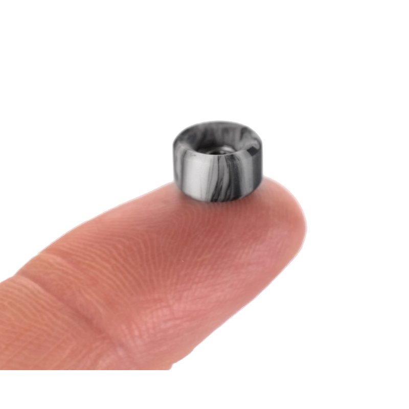 Set of four Apex Series, Slim Bowl Shaped Fingerboard Wheels in "Grey & White Swirl". Each set of Teak Tuning's Apex Series wheels is designed and made in the USA with premium quality, custom Teak blended urethane. The Slim Bowl shaped wheels hit the sweet spot with a 61D durometer. They’re not too hard, and they’re not too soft. Measuring 7.5mm in diameter and 4.4mm wide, these wheels are a hybrid between the Cruiser style and New Street shape. This shape is a “standard” size fingerboard wheel with similar features to cruiser wheels, making them great for easy riding and doing tricks on all kinds of surfaces. Many fingerboarders love the squeak sound that urethane wheels make as you powerslide across a surface or do a sharp turn. Perfect for riders of all skill levels. Includes a free Teak Tuning sticker.