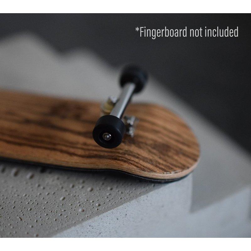 - 65D DUROMETER || These superior performing, highly durable custom all terrain polymer wheels are completely new to the fingerboard industry and exclusive to Teak Tuning. The hybrid polymer blend material is perfect for both indoor or outdoor use as it collects less dirt and provides excellent control and performance on any surface - smooth or rough. Measuring 7.7mm in diameter and 4.9mm wide, these wheels ride super smooth and feature low friction with a 65D durometer