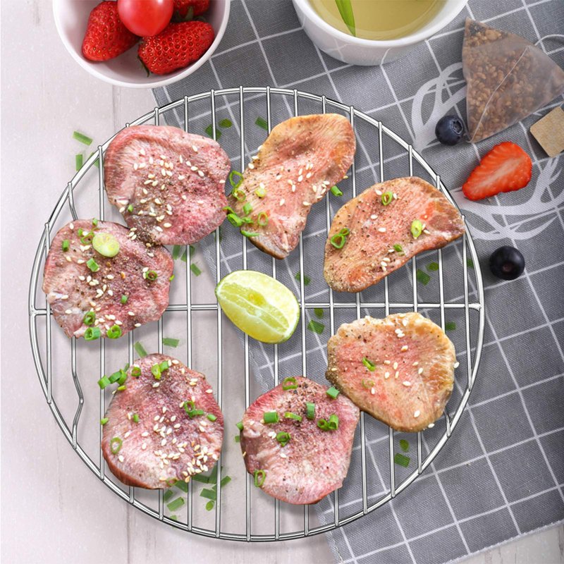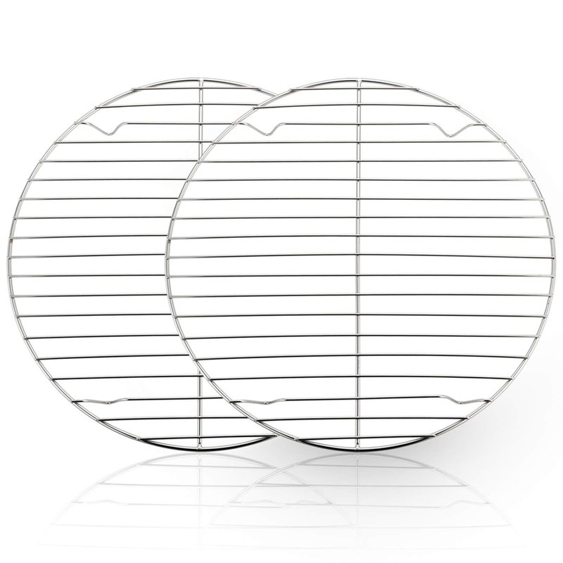 - MULTI-USE(2 PCS): 2 large round baking racks - 10½” × 10½”, Perfect for steaming or baking or cooling the bread, cookie, cupcake, pizza or anything you need, Thoughtful gift for families or friends