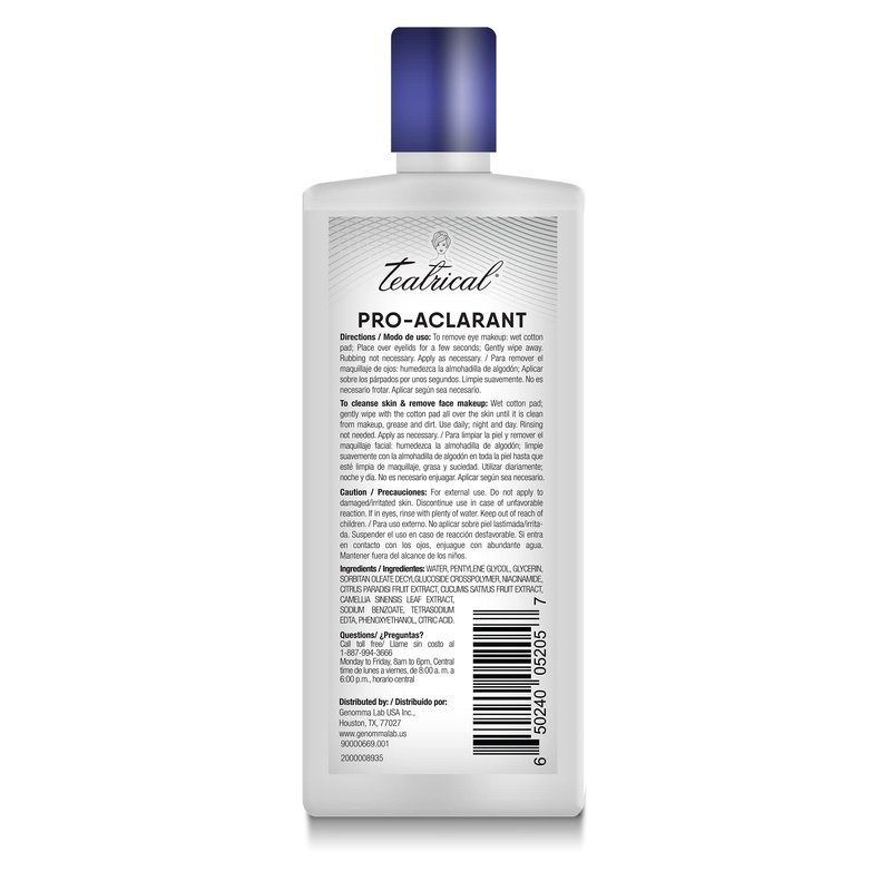 TEATRICAL Pro-Aclarant Micellar Water Cleanser & Makeup Remover, 13.5 Ounce