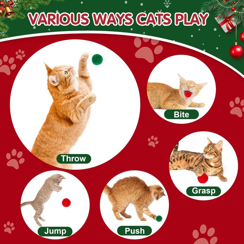 - 【Safety-first design for worry-free play】Our cat balls are soft and comfortable, ensuring no pain when your cat plays. Made without fluorescent agents, TEAWOO balls keep your furry friend safe and healthy during the Christmas celebrations.