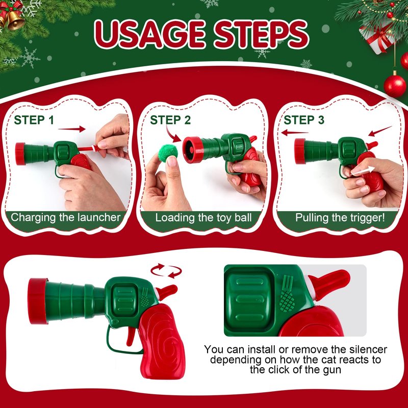 - 【Durable materials for lasting holiday fun】This launcher reaches up to 7 meters and is made from strong ABS. The soft, elastic toy balls are tear-resistant, ensuring endless entertainment for your kitty this festive season!