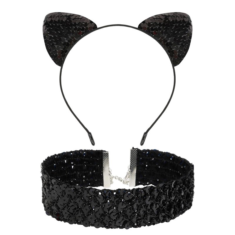 - What You Get - 1 pcs sequin cat ear headband and 1 pcs black choker for women.