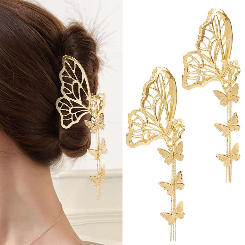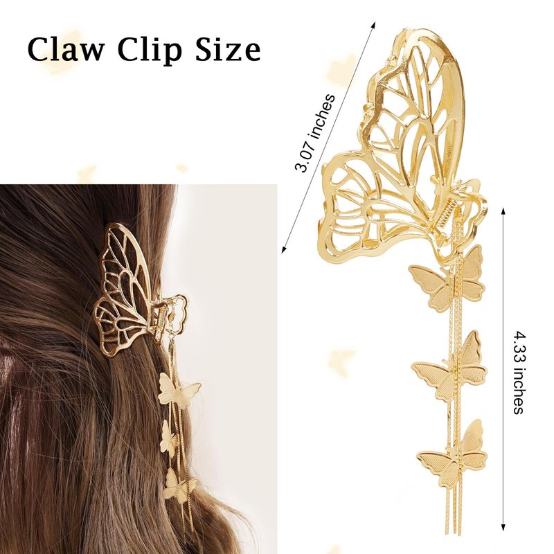 - The hair claws is designed with butterfly shape with elegant tassels, contributing to a charming and whimsical aesthetic. Beautiful look and practicality are in butterfly hair claw clips.