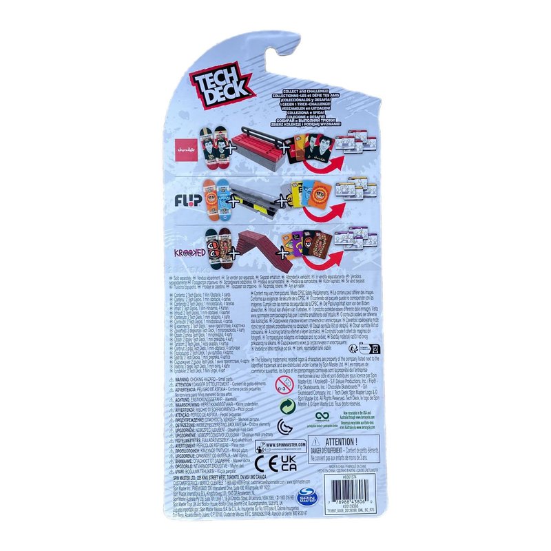 TECH DECK brings you the real deal with authentic fingerboards from real skate companies! Each toy skateboard features legit graphics from the biggest skate companies in the world, including Blind, Baker, Primitive, Element, Finesse, Santa Cruz, Plan B, Sk8mafia and Toy Machine. This finger toy skateboard pack includes everything you need to build 3 custom boards, with extra boards, wheels, stickers and tools to customize any way you like. Recreate your favorite lines and expand your trickionary by checking out fingerboard trick tips on techdeck. As you build your collection, compare it online with TECH DECK’s interactive collector’s tool. There are a ton of TECH DECK fingerboards to collect! If you want real skate graphics from real skate companies, then it’s got to be TECH DECK - collect the deck!