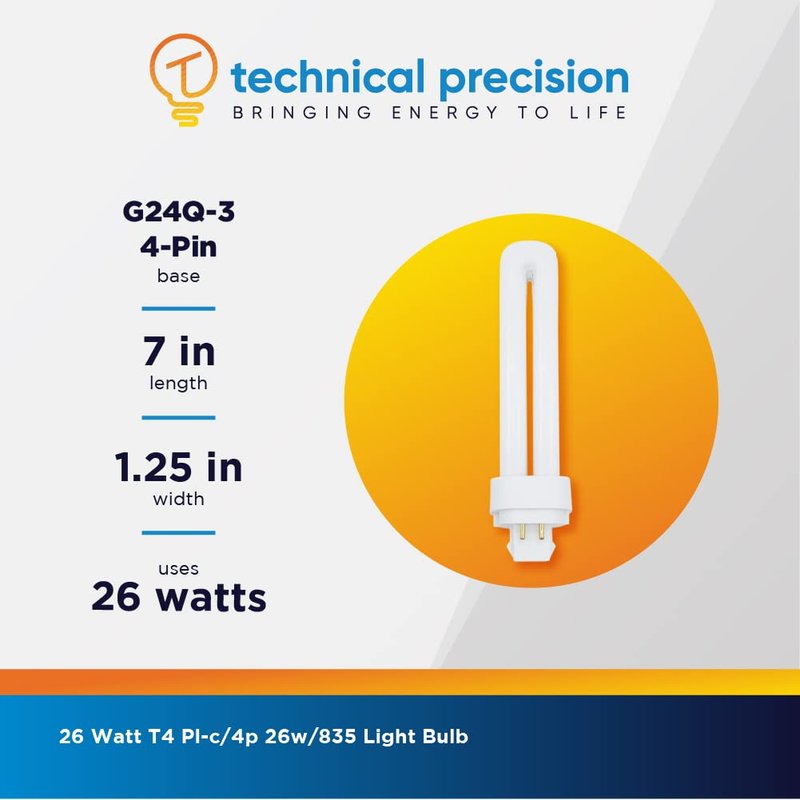 Technical Precision 26W CFL Bulb Replacement for Philips Pl-c/4p 26w/835 USA 7 Inches T4 Twin-Tube Compact Fluorescent Light Bulb - G24Q-3 4-Pin Base - 3500K Standard White - 1 Pack