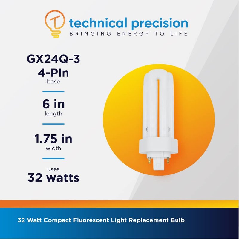 Technical Precision 32W Bulb Triple Tube Compact Fluorescent Light Bulb Replacement for Panasonic FHT32E35 Light Bulb T4 4 Pin CFL Bulb with GX24Q-3 Base - 3500K Neutral White - 2400 Lumens