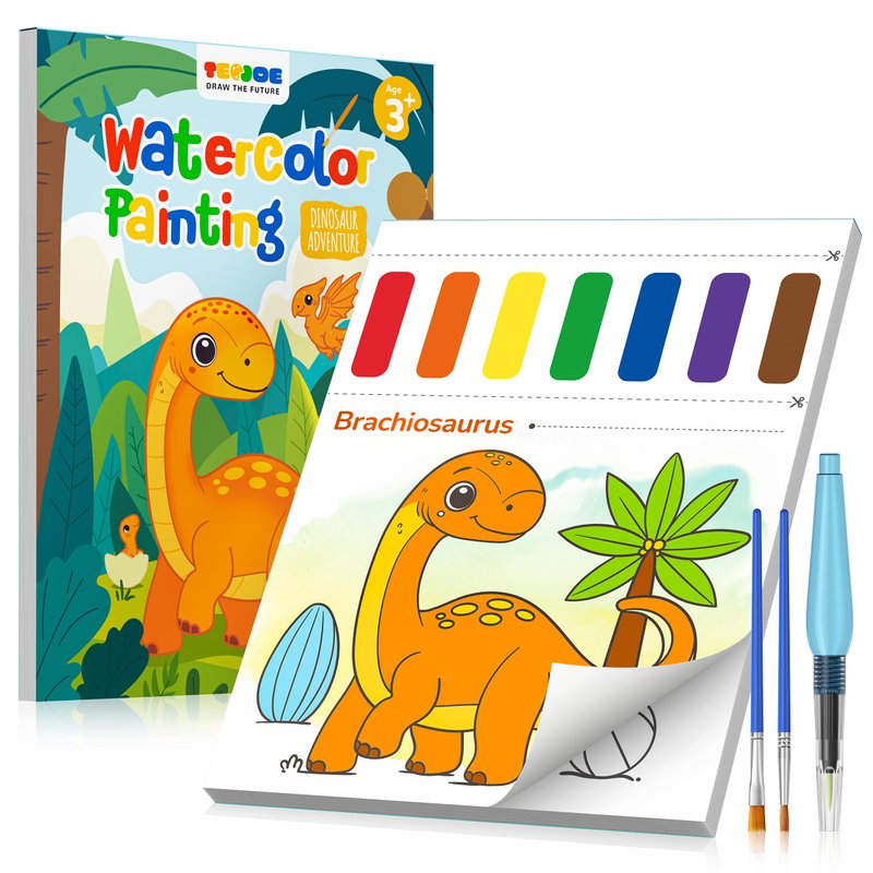 Dinosaur Era Series Watercolour Books leads children through billions of years of time and into an unprecedented adventure in the world of dinosaurs, Dinosaur Series Watercolour painting Book is a fantastic watercolour painting book that combines science, art and creativity. This well-designed watercolor book is not only a visual feast, but also a magical key to stimulate children's imagination and creativity. Each page of the watercolour book is meticulously painted with lifelike images of dinosaurs, and children will follow in the footsteps of these prehistoric giants to explore the mysterious and magnificent ancient times. The watercolour painting book allows children to enjoy the fun of painting while learning a wealth of knowledge about dinosaurs, broadening their horizons and increasing their insights. With an abundance of liquid watercolor paint for kids and unlimited creativity, kids can unleash their artistic potential without worrying about paint running. This watercolour paint set is great for children aged 4-10 years old and makes an ideal gift for birthdays or special occasions.