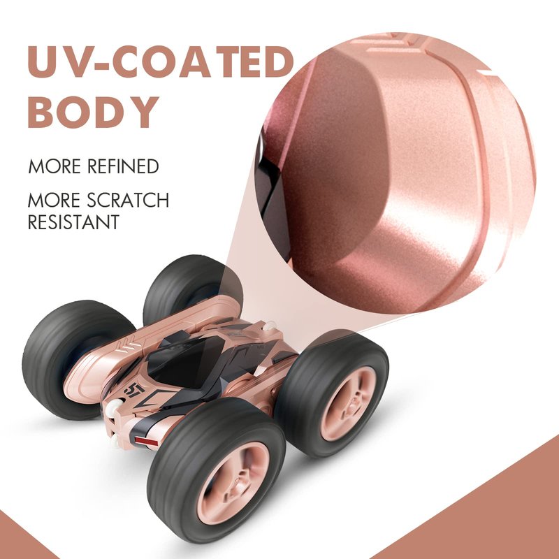 Tecnock Remote Control Car for Kids,360 ° Rotating Double Sided Flip RC Stunt Car,2.4Ghz 4WD Toy Car with Rechargeable Battery for 45 Min Play,Great Gifts for Boys and Girls(Pink)