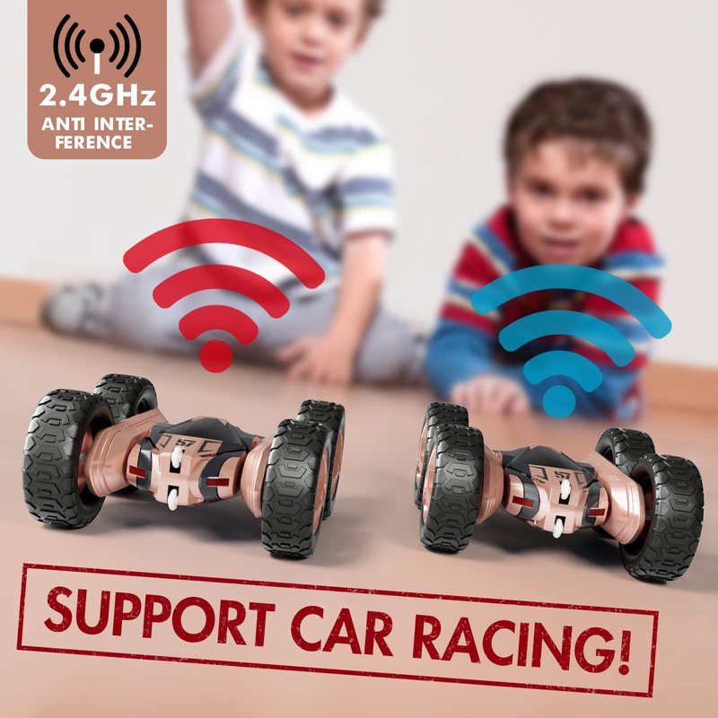 - 【Remote Control Fancy Stunt Car】 With forwarding, backward and flexible steering, you can control the toy car to go in any direction through the remote control. It can also perform many actions beyond your imagination. Flip, jump, double-sided driving, and 360°fancy spinning stunts will bring endless fun to kids.