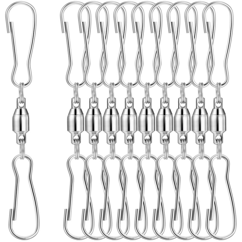 TecUnite 10 Pack Swivel Hooks Clips Smooth Spinning Dual Clip Hanging Windsock Wind Spinners Wind Chimes Crystal Twisters Party Supply