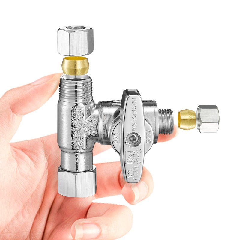 - Versatile Application: With 3/8" OD Female Compression Inlet x 3/8" OD Compression Outlet x 3/8" OD Compression Outlet, this angle stop valve is suitable for a wide range of applications, such as refrigerators, water coolers, and coffee machines.