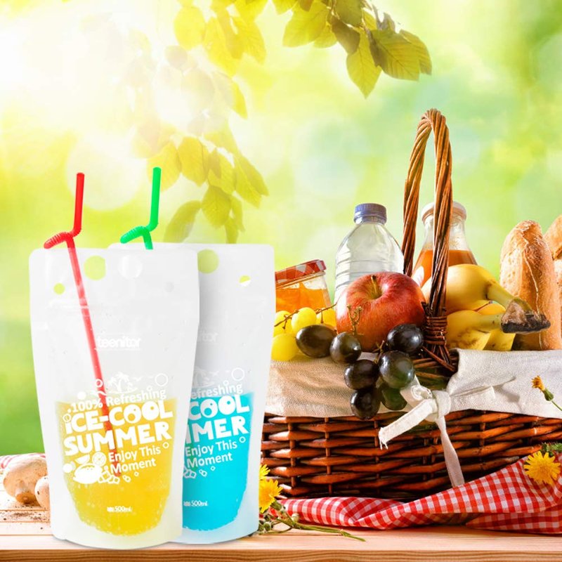 - Unique design: Stand-up gusset bottom allows you to place your drink on a table or a stand. What’s more, our pouches also feature two sets of holes; the holes on the side for holding their straw and the holes on the medium for allowing you to hang them