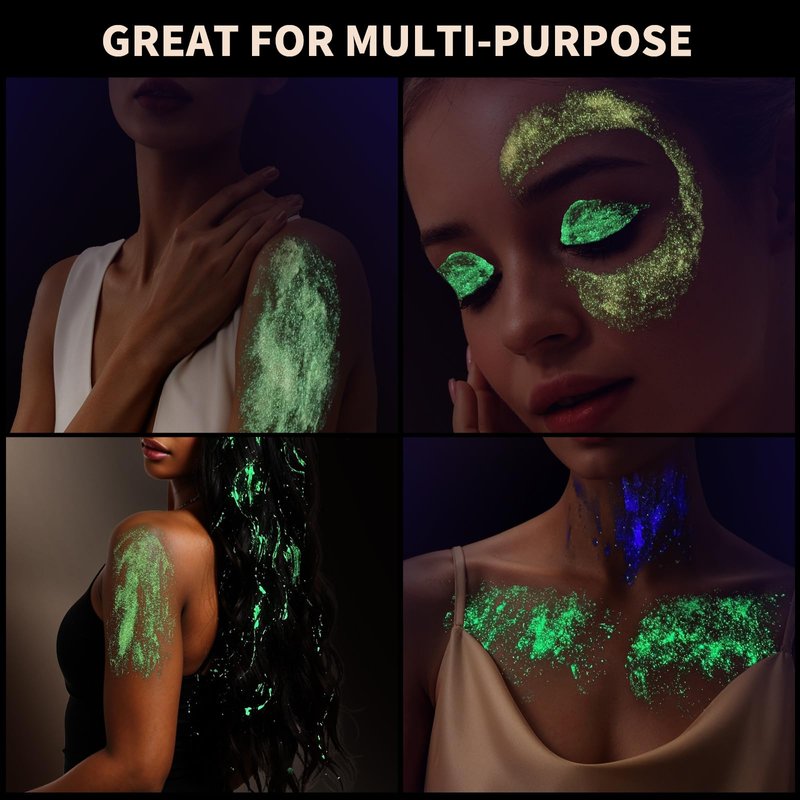 - Illuminate Your Look: Unleash yourself with Teenitor fine glow in the dark glitter. This luminous product harnesses advanced luminescent technology, lighting up your nights after absorbing light. Perfect for rave parties or any evening events where you want to shine