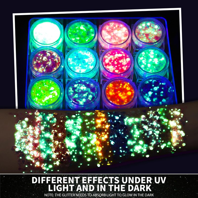 - Sparkling Glow In The Dark Glitter: Unleash your inner radiance with Teenitor glow in the dark glitter. Supercharged with luminescent technology, it glows brilliantly all night after charging in light. Perfect glow in the dark party supplies, rave accessories for women