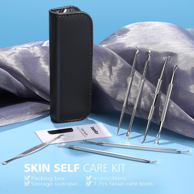 Teenitor 7 in 1 Pimple Popper Tool Kit Blackhead Remover Extractor Tool Kit, Blackhead Extractor and Pimple Tool Safe Treatment Zit Popper Acne Kit Black Head Extractions Tool Comedone Extractor