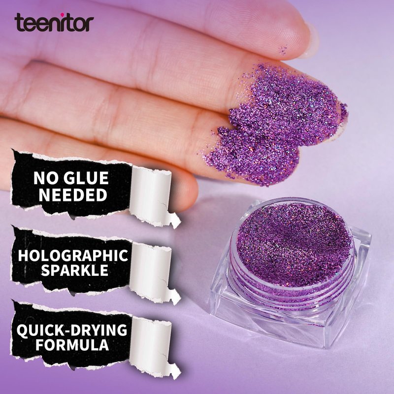 - Teenitor purple body glitter set are very bright and punchy! The jars are screw lids and although small, the glitter is good for multiple applications. A little glitter goes a long way! Our gel is gentle on the skin while providing intense, eye-catching sparkle