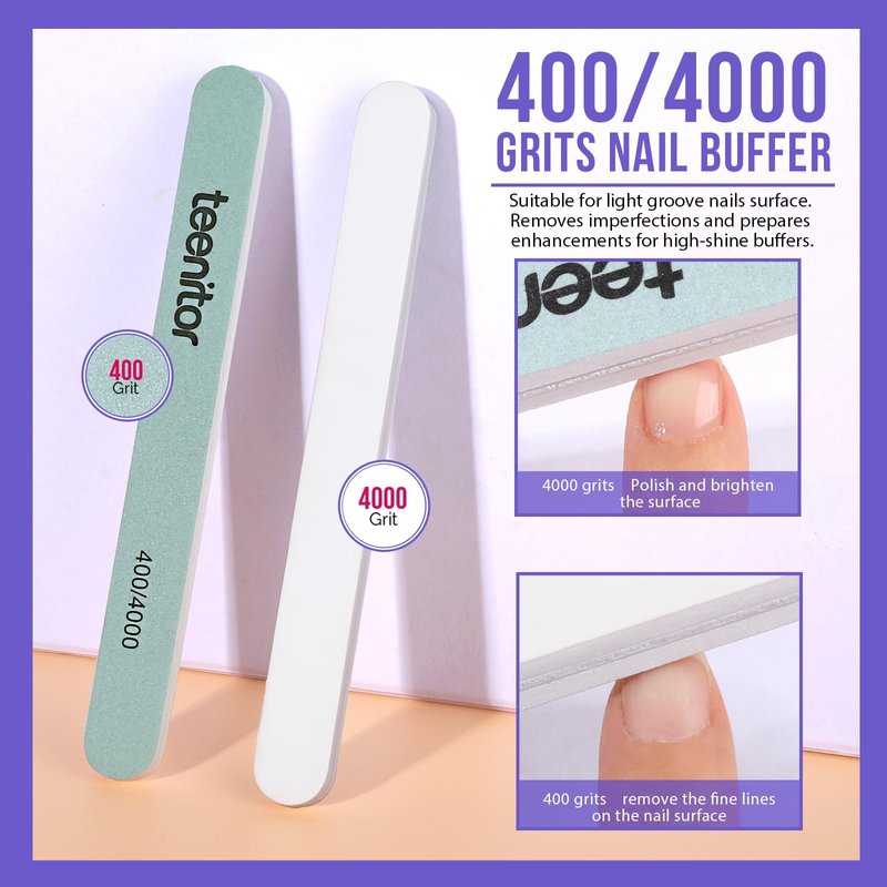 Teenitor Nail Polish Gel Remover Tools Kit with Nail Clips Nail Remover Pads Cuticle Pusher Nail Brushes Nail File Grits 120/180 Buffer Block Grits 400/4000, 6 Pack Purple