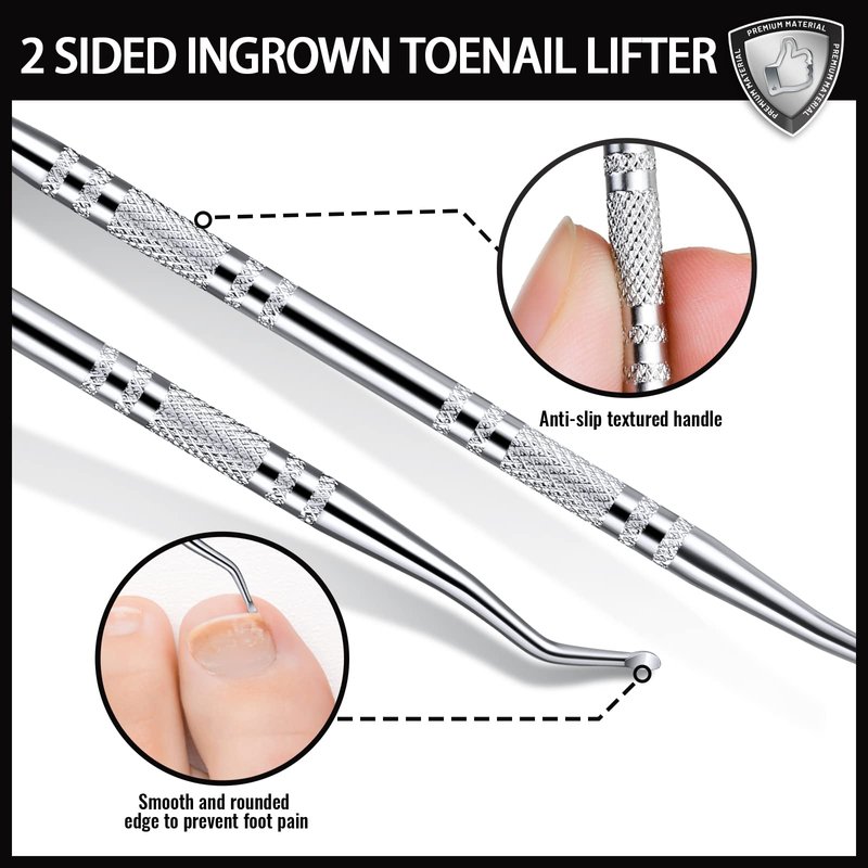 - 2 Sided Ingrown Toenail Lifter: Its principal use is to scrape and cut off tissues from under and over the nail plate. 2 sided toenail lifter with smooth and rounded edge to prevent foot pain, helps tend to painful ingrown toenails
