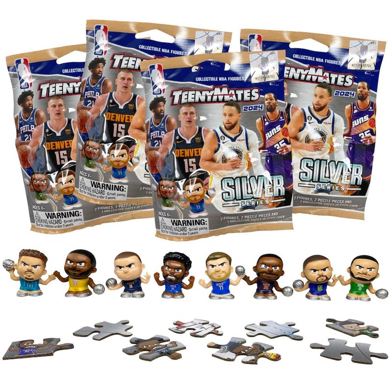 Teenymates Party Animal 2023 NBA Silver Series 9 Basketball Figures Gift Set Party Bundle, Lot of 4 Mystery Packs