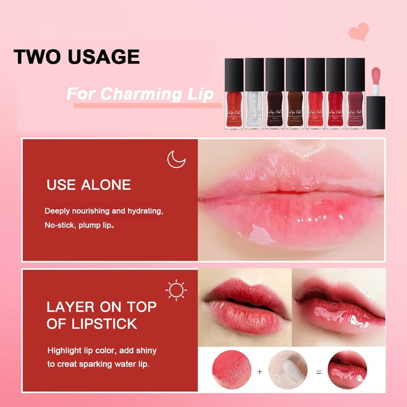- 【Shiny Color to lips】 Enjoy a lip spa! Use alone, plumping lip and moisturizing, 7 colors lip tint oil for choice, charming shiny lip. Layer on top of lipstick, Highlight lip color and create sparkling watery lip.