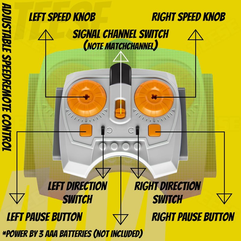 TEESE 9pcs Technic-Motor Set with Motor-Adjustable-Speed-Remote-Receiver, Battery-Box-Switch-Extension-Cable, Compatible with Technic-Parts for STEM MOC Project Replacement-Parts