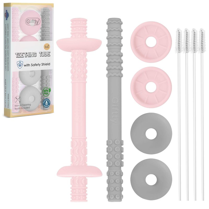 Teething can be an unpleasant time for both you and your baby. However, if there is a correct and effective teething toy, it can significantly reduce the pain of teething and help the baby get through the unpleasant teething period. The Giftty Teething Tube with Safety Shield is an ideal solution for teething babies. It is soft and flexible enough so as not to hurt the baby's tender gums, while the baby can explore by themselves and satisfy their appetite. With the Giftty Safety Shield, it effectively prevents the tube from going too far into the baby's mouth and keeps a safe distance from the baby's throat.