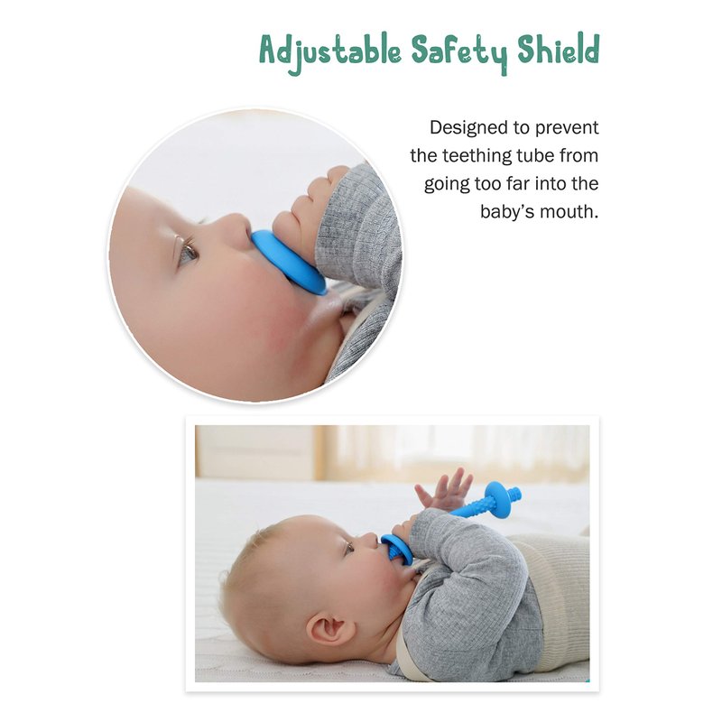 - COMES WITH A CHOKE-PROOF SAFETY PROTECTION SHIELD: Includes a removable and adjustable safety shield that can be attached to the teething tube to ensure that the tube end remains at a safe distance from the baby's throat. It’s safe for the baby and can effectively help soothe teething irritation.