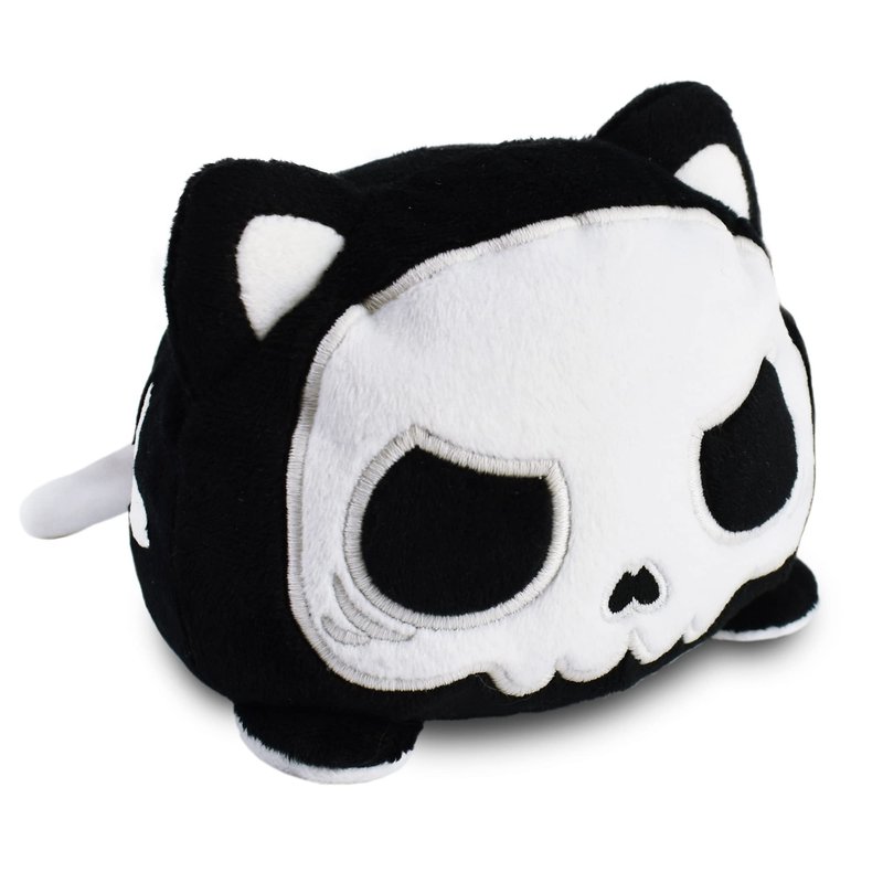 TeeTurtle - The Original Reversible Cat Plushie - White + Skeleton - Glows in the Dark! - Cute Sensory Fidget Stuffed Animals That Show Your Mood - Perfect for Halloween!, 4 inch