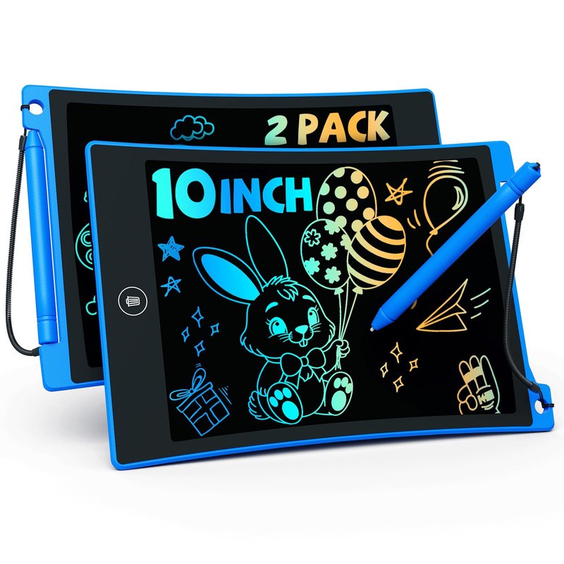TEKFUN 2 Pack LCD Writing Tablet with Anti-Lost Stylus, 10in Erasable Doodle Board Coloring Drawing Pad for Kids, Car Trip Educational Toys Birthday Gift for 3 4 5 6 7 Girls Boys Toddler (2*Blue)