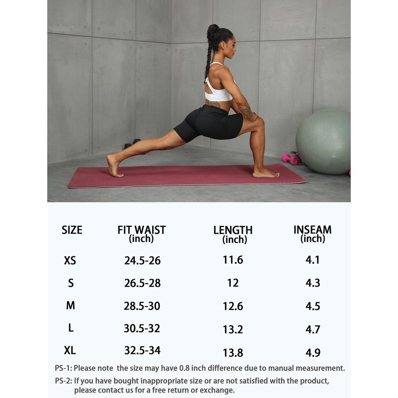 - Gusseted crotch design and elastic waistband: These biker shorts are designed with a gusseted crotch that reduces chafing and allows for a full range of motion. The high-rise waistband and tummy control offer a secure and flattering fit, helping you feel confident and comfortable during any exercise