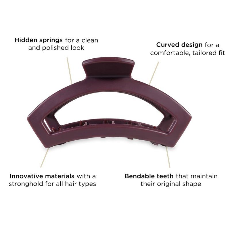 TELETIES - Open Tiny Hair Clip - Fall Collection - Hair Claw Clips for Women - Strong Grip, Bendable Teeth, Curved Design - For All Hair Types and Textures - Burgundy Bliss