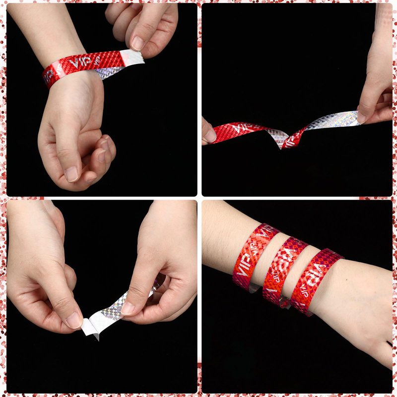 Teling 500 Pack VIP Plastic Wristbands Party Wristbands for Events VIP Custom Wristbands Plastic Bracelets Wristbands Waterproof Wrist Bands Arm Bands for Events Concerts (Holographic Red)