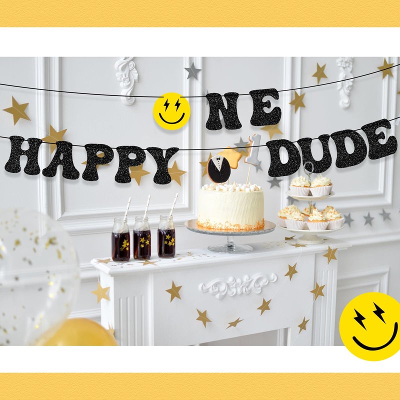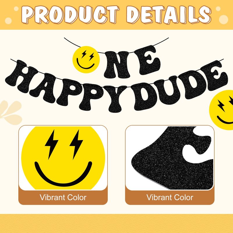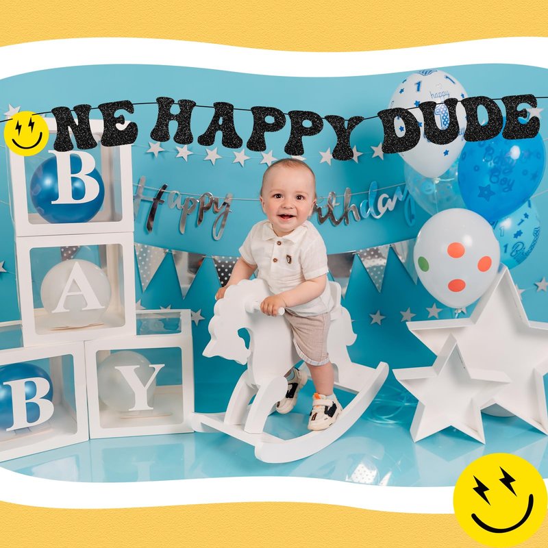 - Eye Catching Design: This One Happy Dude party decoration is designed to feature a smiling face with a cute ONE font, expressing a joyful and festive atmosphere. This Smile One banner is sparkling overall and will complement the excitement of the baby's 1st birthday party