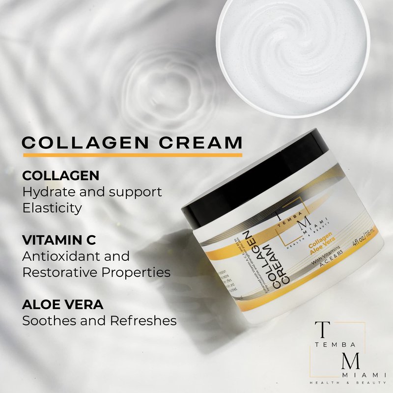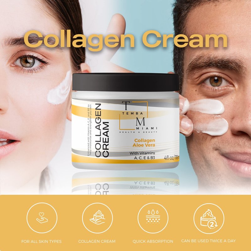 TEMBA MIAMI COLLAGEN Face CREAM MOISTURIZER, Non Greasy ANTI-AGING for ALL SKIN TYPES, Including SENSITIVE SKIN, 4 fl oz