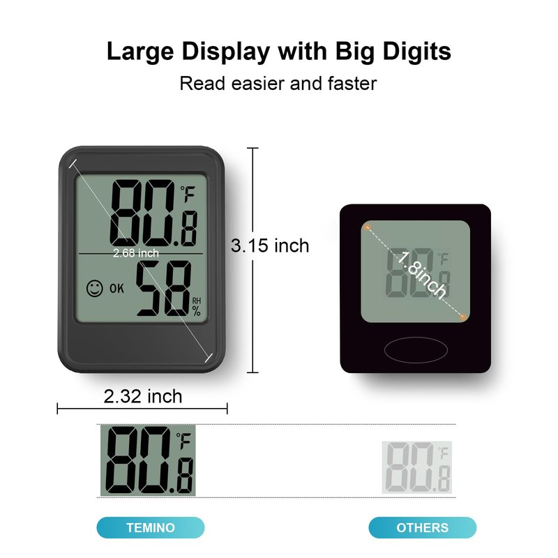 - Easy to read: This 2.32 x 3.15 inch humidity meter can be placed anywhere without taking up space, such as cigar humidor, baby nursery, room, kitchen, office, greenhouse etc. The digital hygrometer for humidor is designed with large numbers to make it easier and faster for you to read the temperature and humidity.