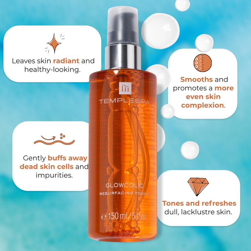 TEMPLESPA | GLOWCOLIC | Exfoliating Toner with Glycolic Acid, Vitamin C and Hyaluronic Acid to Reveal Smooth and Glowing Skin, Natural Ingredients, Cruelty-Free, Vegan, 5.0 fl.oz.