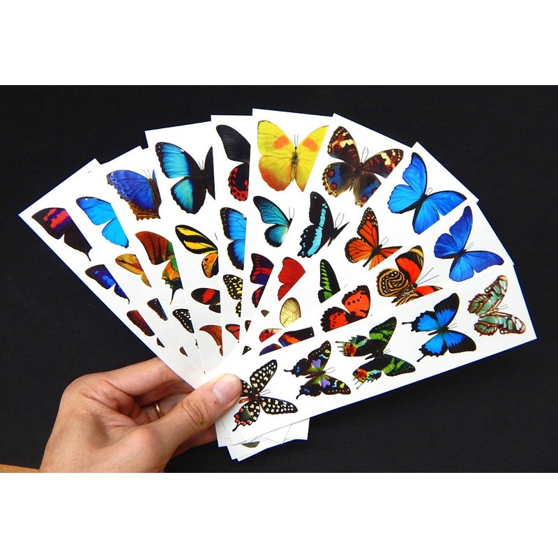 Each order = 10 sheets (50 unique temporary tattoos) featuring REAL butterfly species. Each tattoo = 1.75” wide. Highest quality, rich colors last for days (depends on your skin). There are 16 unique sheets available, order the 16 sheet option (80 unique tattoos) or 40 sheet option for additional savings! Great for girl's body art, children's party favors, stocking stuffers, halloween costumes, science gifts for kids, children's hair / beauty salon etc!