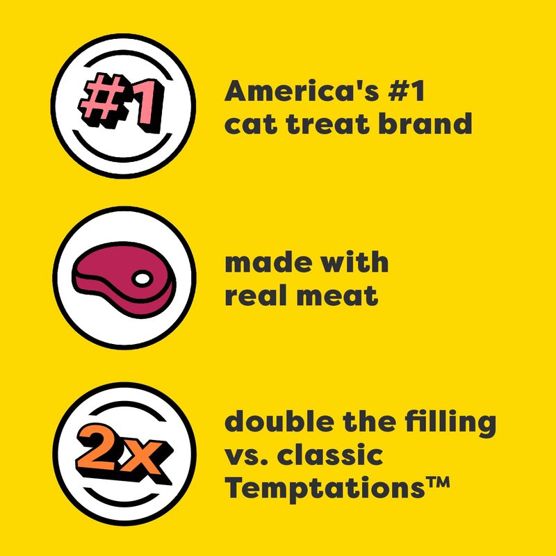 - Crunchy Outside, Creamy Inside: These irresistible cat treats have a visible creamy center wrapped in a crunchy shell and have 2x more creamy filling than classic TEMPTATIONS treats