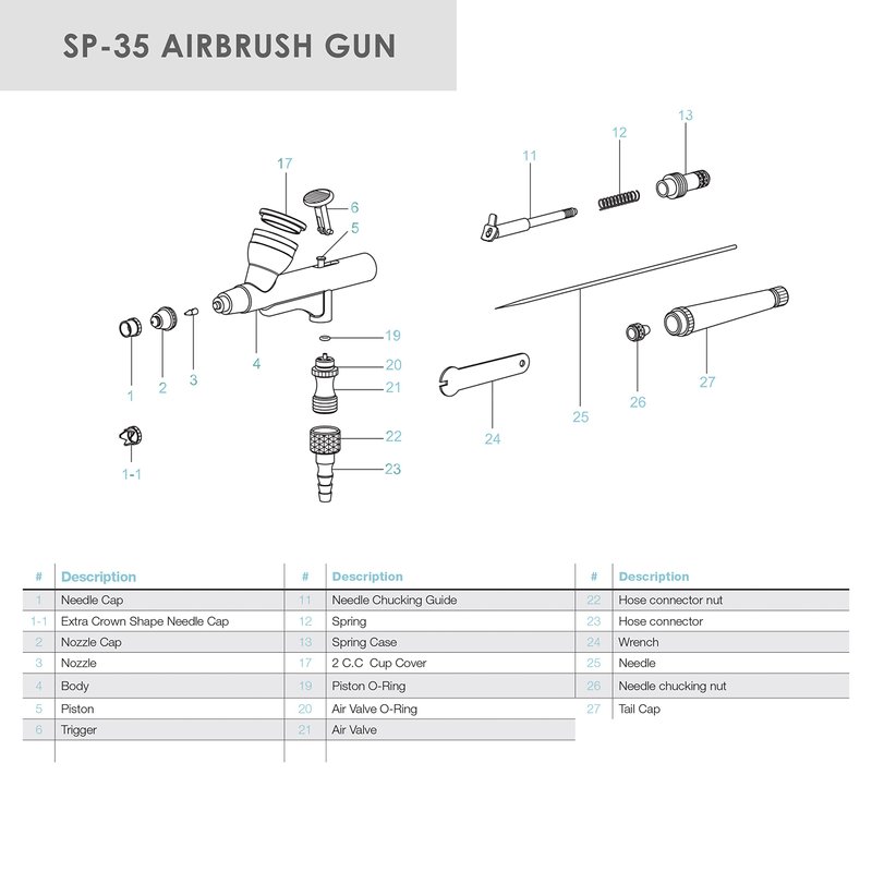 - Top-feed, dual action airbrush