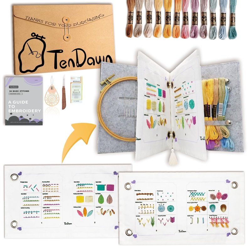 TenDawn Embroidery Kit for Beginner Adults, 24 Basic Stitches, Organized Function, All in One